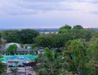 Leticia Hauptstadt des Departamento de AmazonasParkanlageHoteleingangSicht auf den Amazonas Santa MartaReserva Natural Palmari Brasil
